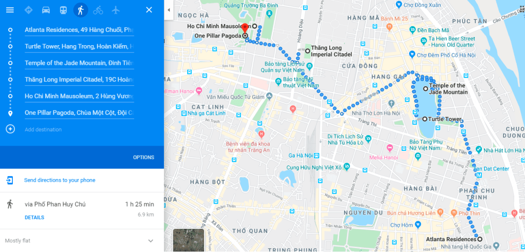 Some places like the Thang Long Imperial Citadel , Ho Chi Minh Mausoleum and One pillar Pagoda can be covered by walk. The whole below plan we completed in one day with lounging around the Haon Kiem Lake where Turtle tower is.